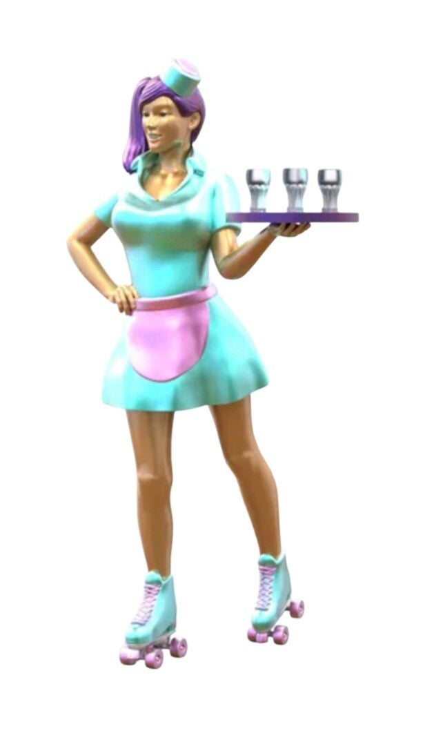 Waitress on Roller Skates with Drinks #2