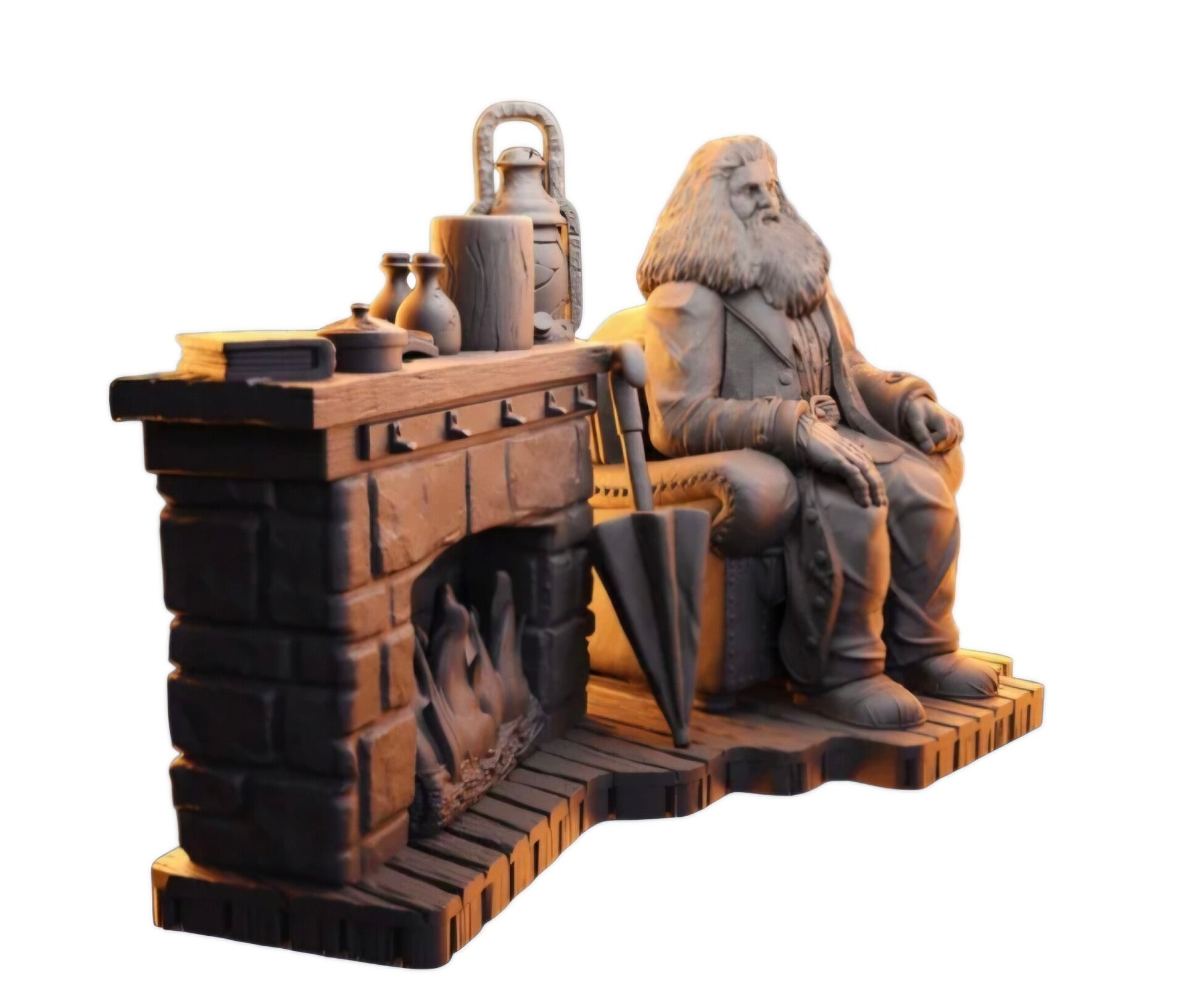 Robbie Coltrane as Hagrid Seated with Fireplace (on base) in HARRY POTTER